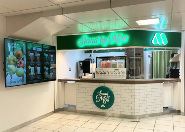 小型化の動きはファストフードの世界にも見られる。モスバーガーを運営するモスフードサービスは8月9日、新業態の小型店「Stand by Mos(スタンドバイモス)」を東武東上線池袋駅の改札内にオープンした。この店はハンバーガーもポテトも扱っておらず、主に規格外品などで廃棄されてしまう野菜を使用した飲料を扱う、いわゆる「ドリンクスタンド」だ。