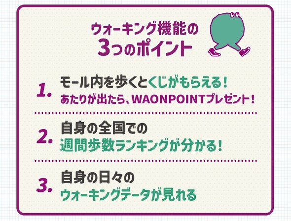 ウォーキングに参加する人が増えることで、施設全体の集客や売り上げ増にはどれくらいの効果があるのだろうか。この点について質問すると、「直接的な集客・売り上げを目的とした取り組みではないため、回答は差し控えさせていただきます」(担当者)とのこと。筆者の見解だが、施設内の回遊を促すことで自然と購買機会が生まれるだけでなく、「悪天候時にもウォーキングができる」という来店動機にもつながる可能性もありそうだ。