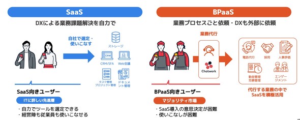 これは、SaaS(Software as a Service)の進化形ともいえる。SaaSがソフトウェアをクラウドで提供するのに対し、BPaaSはソフトウェアに加え、それを運用する人的リソースやプロセスまでをパッケージ化する。つまり、「システム+人+業務プロセス」をまとめて提供するのだ。