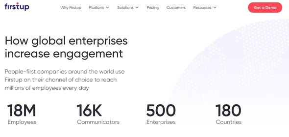 コミュニケーションスキル向上のためのツール提供に特化した会社「Firstup」を紹介します。米カリフォルニア州で2015年に設立されたFirstupは、従業員エンゲージメントを向上させ、コミュニケーションを改善するためのコミュニケーションプラットフォームを提供しています。世界中の500以上の企業が採用しており、180カ国・1800万人の従業員にリーチしています。