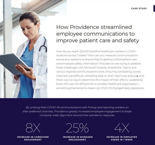 Firstupの成功事例として興味深いのが、Providence(プロビデンス)という医療システムの事例です(参照:PDF)。