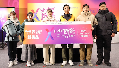 「XShelter 断熱」シリーズは、断熱シートと吸光発熱わたを組み合わせた、外部環境を“無効化”する新素材を採用している。通称「着る断熱材」。8月26日に実施した発表会では、マイナス20度の冷凍室で機能を体感できるブースを設けるなど、寒さも暑さも感じない究極の「無感覚ウェア」として話題となった。