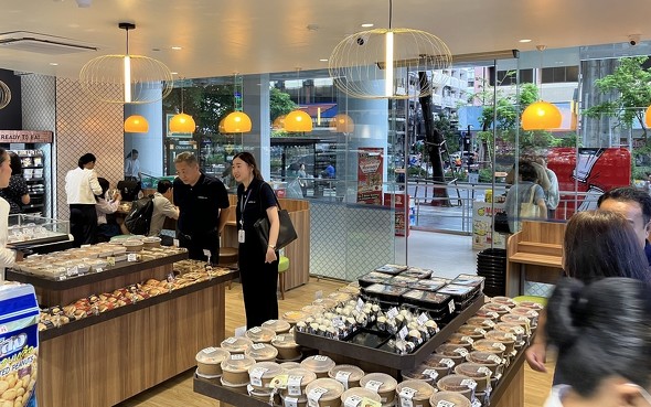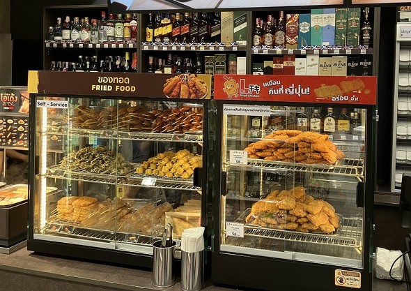 ローソンは、2013年3月にタイへ初出店。現在はバンコクエリアを中心に、鉄道や空港、病院、オフィス、コンドミニアムなどに196店舗を出店している。地域のニーズに合わせた商品のほか、販売が好調なおでん、デザート、ベーカリー、店内調理の弁当、フライドフーズなどの強化を進めている。
