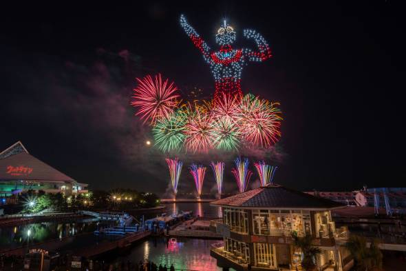 八景島シーパラダイスでは、2023年のクリスマスと年末時期にナイトイベントとして、1000機を使ってドローンショーを実施した。観覧チケットは4300円〜(水族館の入場料金は別、Xmas特別公のみ6500円〜)で人気アニメの「ウルトラマン」「エヴァンゲリオン」「鬼滅の刃」とコラボ。満員御礼とまではいかずとも、興行として成り立つ兆しが見えたという。