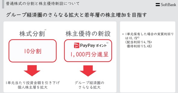 「株式投資を、より身近に」――。ソフトバンクは株式分割を行い、2024年10月から同社の株を「10分の1」の価格で買えるようになる。これにより、同社株式の最低投資金額は現在の約20万円から2万円程度に引き下げられる見込みだ。