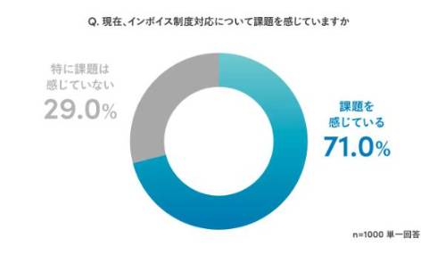 インボイス制度対応について「課題を感じている」とした人は71.0%に上った。インボイス制度が開始して1年が経過するが、制度に対して課題を感じている人がいまだ多いことが明らかになった。
