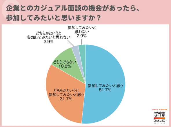 転職において「カジュアル面談」の機会があれば、参加したいと考える20代は8割超――就活情報サイトを運営する学情(東京都中央区)が、そんな調査結果を発表した。20代は転職活動で、どのように企業への理解を深めたいと考えているのか。