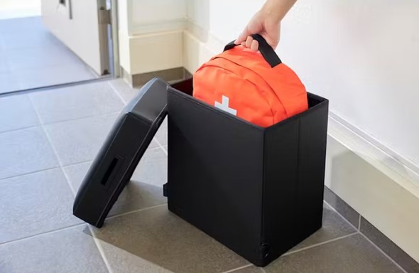 ちょっとユニークなアイテムとしては、持ち運びできる防災収納スツールがある。普段は椅子として玄関などに置けるが、非常時にはリュックとしてすぐに持ち出せるようになっている。防災用品を収納する箱を日常生活に溶け込ませようという工夫だ。