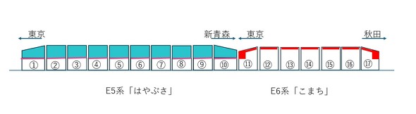 さらに「はやぶさ」と「やまびこ」は1号車から10号車まで、「こまち」と「つばさ」は11号車から17号車としている。「こまち」と「つばさ」を1号車から7号車にすると、連結したときに1号車から7号車まで2両ずつ存在し、乗り間違いの原因になるからだ。また、「はやぶさ」「こまち」「つばさ」は全車指定席になっているから、自由席特急券で乗り間違える心配はない。