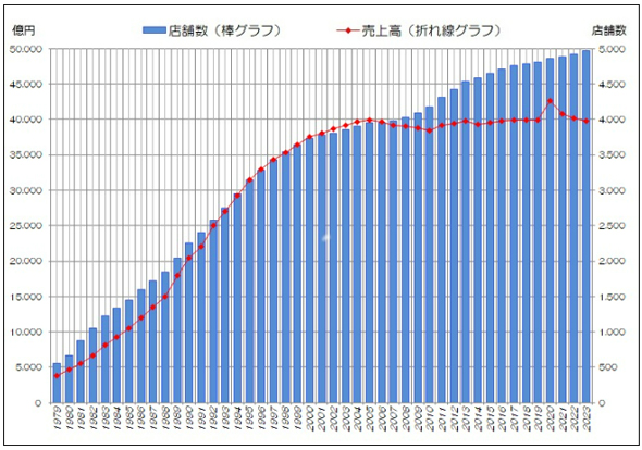 しかし、プレーヤーは右肩上がりで増えている。1975年から2000年の間、ホームセンターの数は年間約100〜200店のペースで増え続け、それ以降もじわじわと増えて2008年に4000店舗を突破、2023年には4970店舗にも到達しているのだ。
