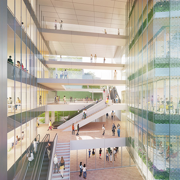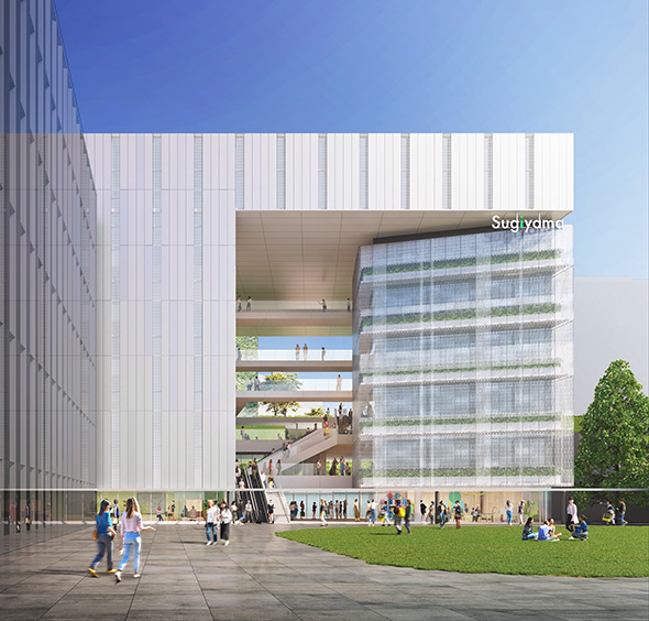 椙山女学園の新棟には情報社会学部を中心とした大学施設と、同社と共同で「星が丘コミュニティスペース」(仮)を設置。同コミュニティスペースでは働く女性を応援するライフデザインカレッジや課題解決型授業を実践する場を設け、子育て支援拠点、多目的スペース、コワーキングスペースなどの機能を整える予定としている。