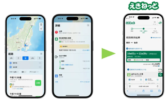JR東日本は10月2日、指定席予約サービス「えきねっと」とAppleが提供する地図アプリ「Appleマップ」の連携を開始した。Appleのルート検索結果からスムーズに「えきねっと」できっぷ購入できるようにし、利便性を高める。