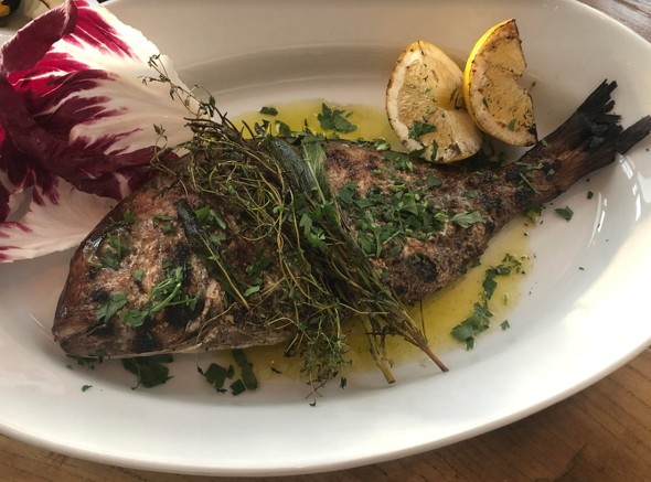 料理は、シンプルかつ豪快な、素材の良さを生かした南イタリア料理、地中海料理が基本。薪焼きのグリルを備え、牛もも肉や豚、旬の鮮魚などを焼いて提供する。地元の魚介をぜいたくに使ったペスカトーラ、淡路島特産の玉ねぎを前面に出したアマトリチャーナなどのパスタも売りである。ドリンク付きランチセットの平均的な価格は4000円前後と、決して安くない。