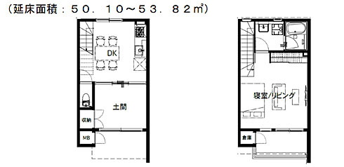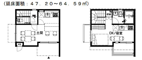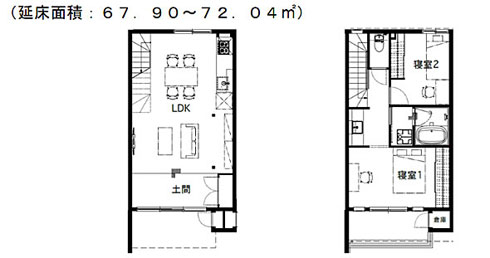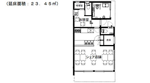 1階に大きく土間を設ける店舗兼用住宅では、住まいと商いが一体となったカフェや飲食店を構えるほか、地場産野菜の販売などを想定。施設の中央には、入居者や近隣の人々も活用できる開かれた区画としてシェア店舗(キッチン)を設ける。