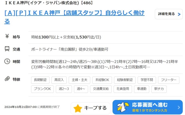一方のイケアは、コストコのように明確な時給基準を公開していないものの、ほとんどの求人は時給1300円以上であり、一定の基準になっているとみられる。なお、イケアではパートタイマーを含めた全従業員を正社員としている。同一労働同一賃金の考え方が確立しているスウェーデンにならってのことだという。