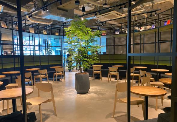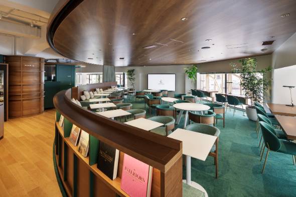 渋谷店はフラッグシップ店の位置付けで、オリーブの認知を高める目的で膨大な人流が見込まれるエリアに出店したという。1階のスタバは約110席、2階のシェアラウンジは125席を設ける。