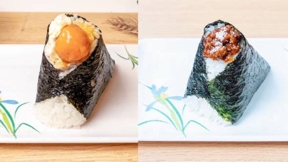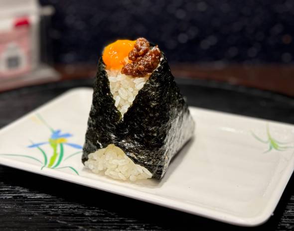 注文してからつくるスタイルゆえトッピングも人気で、「卵黄の醤油漬け+肉そぼろ」「すじこ+鮭」など相性の良い組み合わせや自分好みの一品をオーダーする人も少なくない。全ての材料にこだわりがあり、新潟県岩船産コシヒカリに有明産の海苔、沖縄の塩を使用。大ぶりなのも特徴で、1つ350〜650円ほどの価格帯となる。