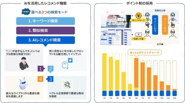 ポイントは企業の教育担当者が利用することも、従業員に配布することも可能だ。初回はサービス利用料とポイントの購入によって利用を始められる。以降は月々の利用料と、必要なポイント分だけをチャージする形とし、限られた教育予算を効率的に活用できるようにした