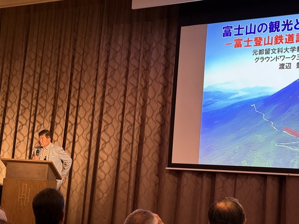 では、一方の反対派はどのような主張をしているのか。「富士山登山鉄道構想に反対するフォーラム」に登壇した元・都留文科大学教授の渡辺豊博氏は、「富士山はユネスコからさまざまな問題点・改善点の指摘を受けているが、登山鉄道を建設すれば、それらの問題が解決するかのような県の主張は誤っている」と声を張り上げる。