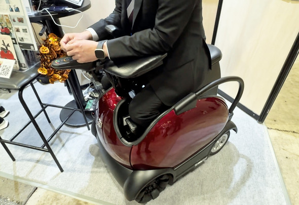 分かりやすく例えるなら、後方から乗り込む方式の電動車椅子だった。筆者は以前から、車椅子は足腰が弱い方、下半身がまひしている方、けがや病気の方が利用するものなのに、後方へ腰を下ろすのは不安が伴うのではないかと思っていた。