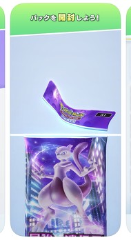 画面の中で「サクッ」とカードパックの封が切られ、現実のカードパックさながらの手触りを思わせるアニメーション。そして1枚また1枚とカードが姿を現す演出。