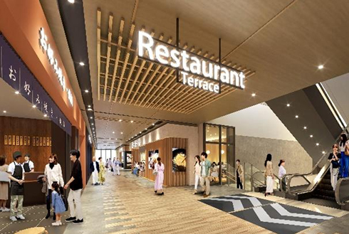 第1期71店舗のうち、約4割の28店舗は中四国地方初出店や新業態などのグルメ関連となり、1階にフードマーケット、2階にレストランゾーン、フードコートを展開する。