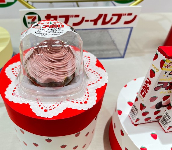 明治「アポロ」、森永製菓「白いダース」、ロッテ「ガーナミルク」という各社の人気チョコレートブランドとコラボした。明治とのコラボ商品である「アポロみたいないちごチョコケーキ」(320円)は、ココアスポンジ、チョコクリーム、イチゴクリームを重ねたケーキだ。アポロのような味わいを再現するため、いちごとチョコのバランスにこだわったという。