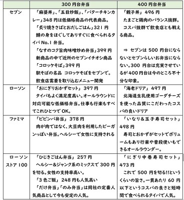 ちなみに、コンビニ各社ではどのような低価格弁当があるのでしょうか。図に整理してみましょう。