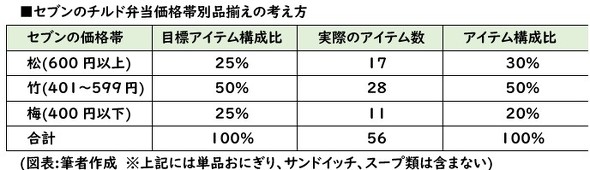 さて、セブンの松竹梅対応に話を戻すと、セブンでは下記のようにアイテム構成を変えています