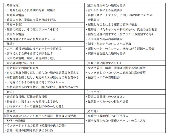 少し抽象度が高いので、同省が発表した事例を紹介します。サポートデスクの担当者に「頭悪い上に性格悪い」と人格を否定するような発言をする、「家に火をつけるぞ」といった脅迫を行うなど、「過度な要求」「セクハラまがいの発言」「正論のような詰問」が記されています。一般的なクレームとカスハラの決定的な違いは、その要求手段の「不当性」にあります。