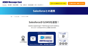 KDDIは、グループ企業のSupershipと共同でSMS送信サービス「KDDI Message Cast」を提供している。全てのキャリアユーザーに1通当たり660文字の長文配信が可能で、導入形態は3つ。専用の管理画面から配信内容を設定できる「入稿ポータル」、既存の社内システムと連携して利用できる「API連携」、そしてSalesforce Platform上から利用できる「KDDI Message Cast for Salesforce」だ。