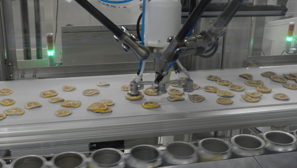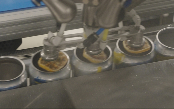 缶の中で浮かび上がらせるために、レモンスライスの厚さについてはミリ単位で試行錯誤を重ね、最終的に5ミリに設定。それを1分間に約600個のペースで缶に入れる独自ロボットについても、ゼロベースで開発した。