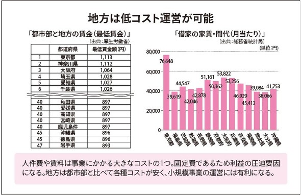 店舗の賃料も都市部と比べて大幅に安いですし、店舗兼住宅の持ち家である場合はさらにコストが安くできます。これらは地方の店の優位性です。