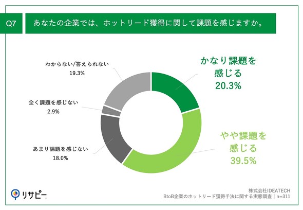 効果を実感できている施策やチャネルもある一方で、59.8%が「ホットリード獲得に課題を感じている」(「かなり課題を感じる」「やや課題を感じる」の合算)と回答していることも分かった。