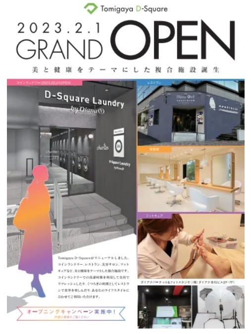 進化系コインランドリーは、今後も進化を続けていくでしょう。東京・富ヶ谷で「D-Square Laundry」を運営するダイアナ(東京都渋谷区)では、本社1階に美容院やフットキュア、カフェ、そしてコインランドリーを集めた「トータルビューティースペース」を2023年2月にオープンしました。コインランドリーで洗濯している間に、カフェや美容室、フットキュアサービスで美と健康に浸ってもらうという狙いです。