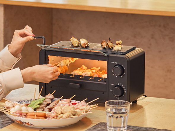 最終的に、スーパーでも購入できるような一般的な焼き鳥サイズなら1本10分以内で1度に6本焼けるところまで完成。火力は10段階あるが、基本的に焼き鳥は最大火力で焼き、パンなど焼けやすいものを入れるときは弱めるなど調節が必要だ。