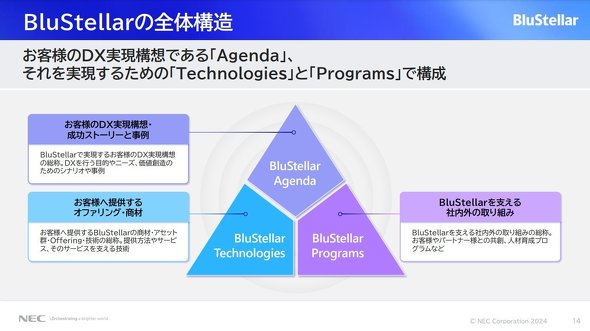 やはりキーワードは「BluStellar」ですね。NECはエンタープライズ領域の大手企業や、国・中央官庁などの顧客とDXを進めています。その基盤になるのが当社のビジネスモデルであり、方法論となるBluStellarです。