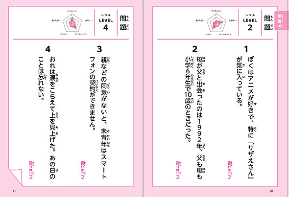 本書は「準備編」(文中に誤りが1〜2個)、「練習編」(同3個)、「本番編」(同5個)に分かれていて、問題文は計50個掲載されています。