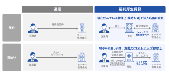 「数十年前からある制度を活用したもの」と千葉氏は説明する。従業員が借りている賃貸物件を会社名義に切り替え、家賃を給与から天引きする仕組みだ。いわゆる社宅とは異なり、今住んでいる部屋にそのまま住み続けられる。
