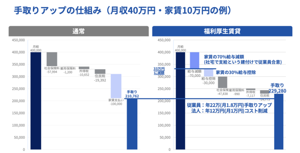だが、手取り増を実現できるのは政治だけではない。あまり知られていないが、例えば月収40万円、家賃10万円の場合、企業の負担は「実質ゼロ」で従業員の手取りを最大年22万円増やせる仕組みが存在する。