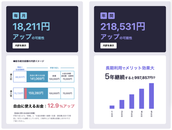 社会保険料は労使折半なので、企業にとっても負担が減るメリットがある。従業員1人当たり月約1万円のコスト削減効果が見込める形だ。「福利厚生の充実と経費削減を両立できる点が評価されている」とシャトクは説明する。
