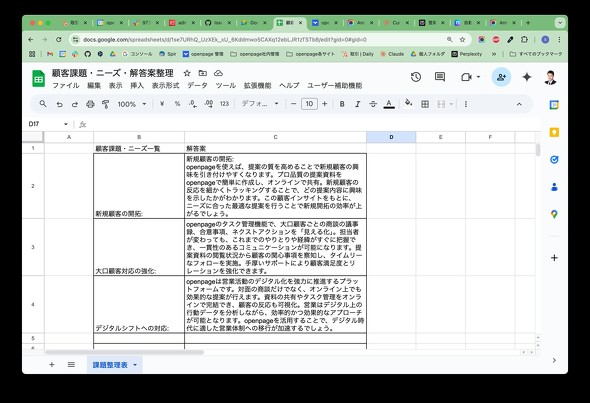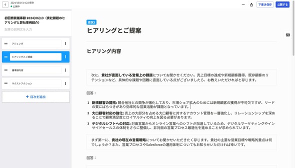 日頃の営業活動で、顧客からヒアリングできているとなお良い。顧客から得る情報はコンテンツのニーズを把握する重要なリソースである。筆者が代表を務めるopenpageでは、自社のデジタルセールスルームを活用し、顧客から課題や目標、注力投資分野といった“生の声”を聞き、記録している。