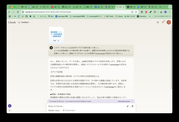 そのうえで、出したいコンテンツのイメージを思い浮かべて命令をする。例えば「3000字のブログ記事として、〇〇のタイトルで、××の流れで記事を書いてほしい」と、元のノウハウと共に依頼する。
