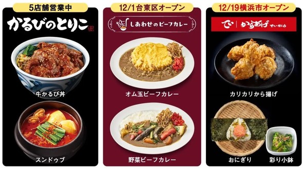 いずれも吉野家の跡地であり、カレーは都市型、から揚げは郊外ロードサイド型とそれぞれ異なる立地でスタートした。カレーとから揚げは、ともに吉野家で提供しているメニューだが、専門店ではさらにブラッシュアップして、ブランディングしている。