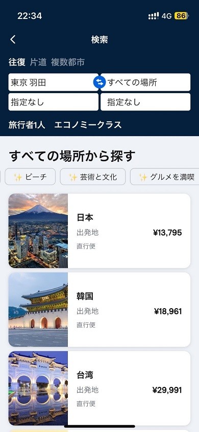 また、昨今の日本ではオーバーツーリズムなどの問題はよく謡われているため、観光客が集中する「ホットスポット」だけでなく、まだ知られていない旅行先を新たに見つけるお手伝いを通じたアプローチもしていきたいと考えています。スカイスキャナーの「全ての場所から探す」機能をより訴求していきたいと考えています。本機能では日程と出発地を設定することで、お得順に旅行先をご紹介し、隠れた魅力を持つ旅行先を見つけられるようにしました。