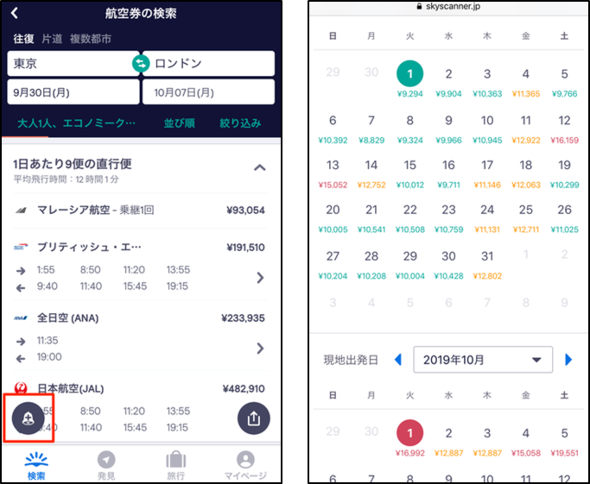 希望する日程や目的地への価格の変動をリアルタイムでウォッチ、変動したタイミングで通知を送る「プライスアラート機能」と、対象区間の航空券価格を一覧で見ることができる「カレンダー/チャート表示機能」です。