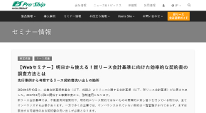 プロシップが対応支援策として力を入れているのは、ウェビナーを開催(月に複数回)して知見を発信することだ。巽氏は「これまでの経験から、契約書の洗い出しから会計方針の整理までの他社事例の紹介や、仕訳パターンの準備などで『こう進めるべき』とアドバイスできる部分が数多くあります」と語る。