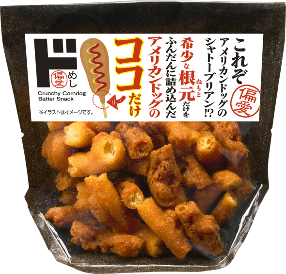発売からわずか1カ月で1万7000個を売り上げたヒット商品。アメリカンドッグ好きにとっては“希少部位”ともいえる根元のカリカリ部分だけを集めたという発想が秀逸である。サクサクとした食感とほんのり甘い生地がクセになり、スナック感覚でも楽しめる。ケチャップやマスタードで味変が楽しめる点も魅力だ。