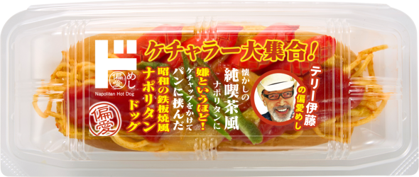 ドンキとタレントのテリー伊藤氏のコラボから誕生した“昭和レトロな喫茶めし”をワンハンドで楽しめる一品。しっとりとしたケチャップまみれのナポリタンをドッグロールに挟むことで、懐かしい味わいを手軽に頬張れる。2024年8月発売の「黄金おにぎり」に続く“テリー伊藤の偏愛めし”第二弾として、テリー氏の番組企画と連動して生まれた。ケチャップ好きにはたまらないレトロ感である。