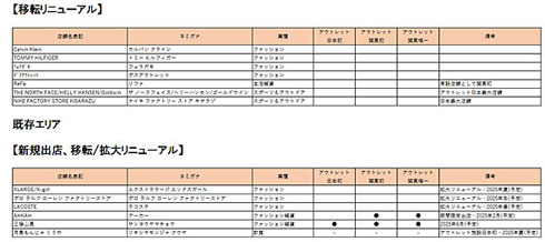 また、アウトレット日本初出店となるスケートボード店「instant skateboards」、ファッションブランド「SOPH.」、ゴルフブランド「PXG」、アウトレット関東初出店となるアスレティックウェアブランド「lululemon」、ライフスタイルブランド「MAISON KITSUNE」などが新規出店する。